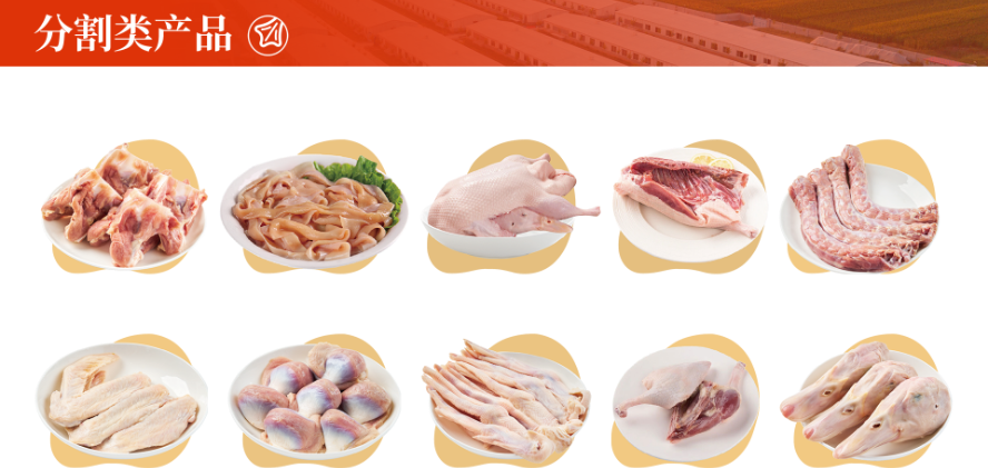 鸭分割板块拥有分割鸭肉生产线2条,日屠宰量可达15万只,年屠宰肉鸭4500万只,公司分割鸭产品种类繁多,主要有分割鸭、西装鸭、半片鸭、白条鸭等系列产品,通过精细分割加工,产品细化分类,可以深度满足客户的不同采购需求。
